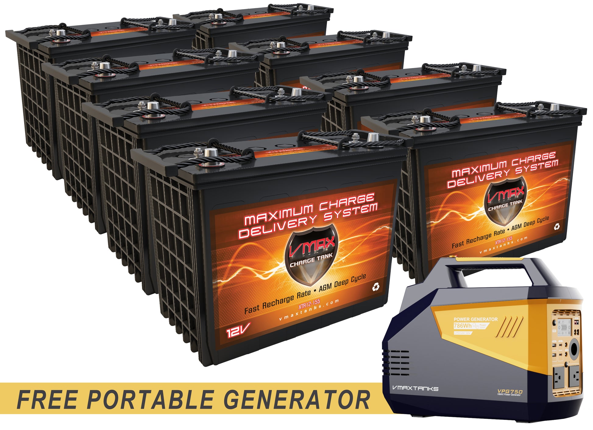 (x8) 12V 155Ah AGM Battery Pack for Polaris Ranger EV + FREE GENERATOR
